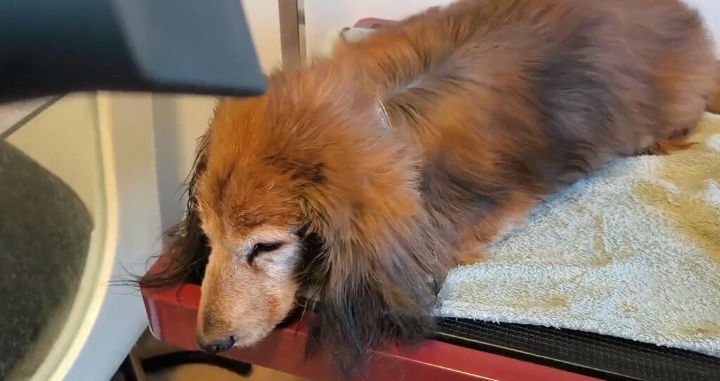 Máme profi fén a je vysušená za tři minutky. A srst má opět výstavní.