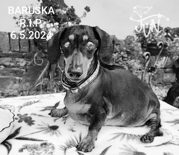 Baruška k nám do JVN Domova Efef přišla posledního června minulého roku. Začátky jsme měli náročnější, vážná diabetička, která měla cukr tak vysoký, že sahal ke 30. Cushing, nemocná štítná žláza. Kolapsy, hospitalizace. Ale! Dala to a téměř rok fungovala naprosto báječně s medikací. Ne jednou jste viděli, jaký byla pažraveček a jak milovala jídlo. Těšila se na jaro a teplo, to bylo její, jít na zahrádku a slunit se. Včera šla na zahrádku naposledy. Už jsme věděli. Srdíčko. Paní doktorka Zuzka jí přidala léky, ulevilo se jí. Ale dnes nad ránem kolaps, ten poslední. Odešla mi v náručí. Milovaná.