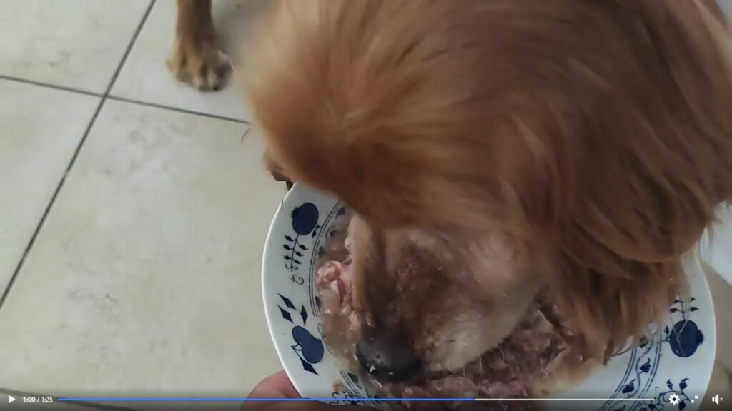 Snědl plný talíř. Pak si lehl do deky a spinká.