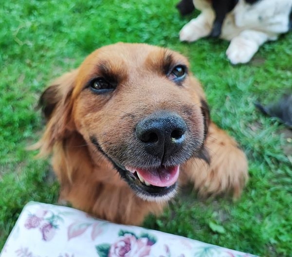 Nádor roste. Moc rychle. Ale Boreček je prostě borec. Denně sní 800g masovky a ještě by kradl. Má různé doplňky a věřte, že co jde, má. Fakt.
