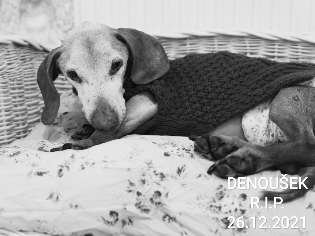 Smrt. Nikdy neodchází s jednou duší. Přijde a vezme si. Dnes mi vzala nejúžasnějšího pana psa. Od prvního dne, 18.11.2018, kdy k nám přišel, to byla láska. Taková ta, kdy víte, že vše je tak, jak být má. Ve smečce si vždy udělal pořádek a s grácií byl kápo. První dva roky byl jeho gauč v obýváku a nikdo mu neřekl jinak než „Obývák“. Prodělal mrtvičky, měl nemocné srdíčko, prodělal kolapsy slinivky a vždy se za pár dní postavil a byl to zase on. I teď do poslední chvíle bojoval, doslova. Když se mu něco nelíbilo, jeho zoubky lítaly do všech stran. Žádné ořezávátko. Největší osobnost se srdcem lva. Jeho chůze připomínala měsíční chůzi. Říkali jsme mu, že je jak na přehlídkovém mole. A on byl, ukazoval nám všem, jak úžasný je. Za celou dobu neměl jediného zájemce a pak už se cedulka u něj změnila “ Na trvalo v JVN “ a jsem za to tolik vděčná. Udělal mi život krásnější. Poslední tři roky mi byl průvodcem. Měl krásných 17 roků a žil naplno. Denoušku, jsi další hvězda v souhvězdí JVN. Už opět řádíš s kamarádem Miloškem. Děkuji. Psát o bolesti, kterou cítím, je zbytečné. Je nekonečná, jako láska, kterou mi byl. ?