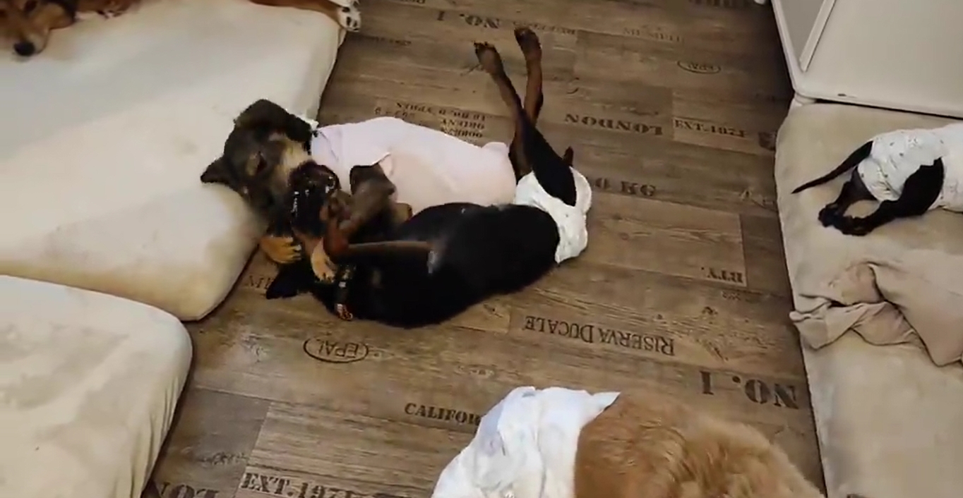 Ano, vidíte správně. Karolínka přijímá v pohodě i nové pejsky. Viktorku vzala do party ihned. Se mnou a Jiříkem funguje bez jediného konfliktu. Jiné lidi neakceptuje a zkouší pak, co může a je ostrá. No, jagouš pakouš.