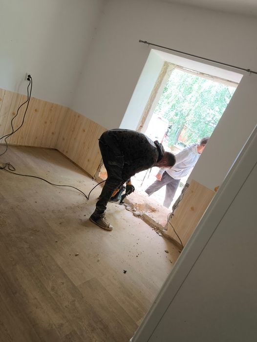 U staroušků vytváří dveře. Aby měli přímý vstup na jejich nově vybudovanou bezpečnou zahradu.