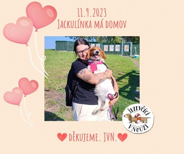 Má úžasnou paničku a celou rodinu! Už napořád! Jackie, miláčku, přejeme ti jen to nej nej!!! Děkujeme vám všem, že jsme ji mohli dát naději na život, že z ochrnuté fenečky, kterou její ex majitel chtěl utratit, je zdravá, veselá, pozitivní a usměvavá holka.