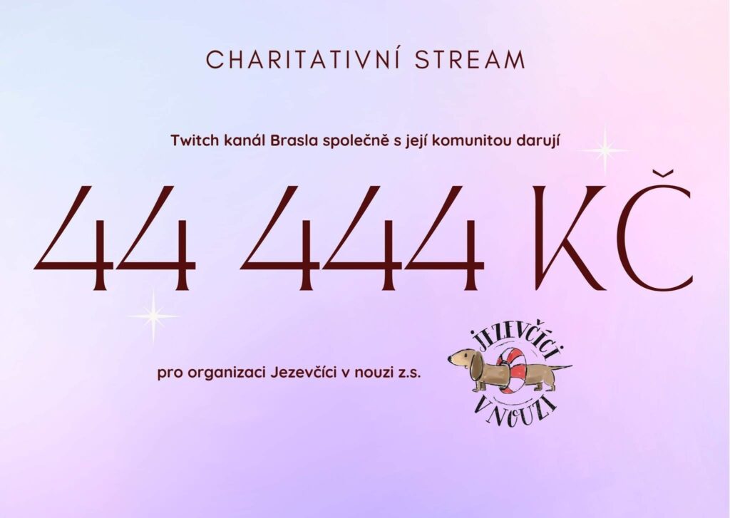 Před chvílí jsme měli takový malý infarkt. Moc děkujeme slečně Lucy Braslavcová za uspořádání charitativního streamu. Sice nevím, co to je, jsem sto let za opicemi, ale výsledek je úchvatný.