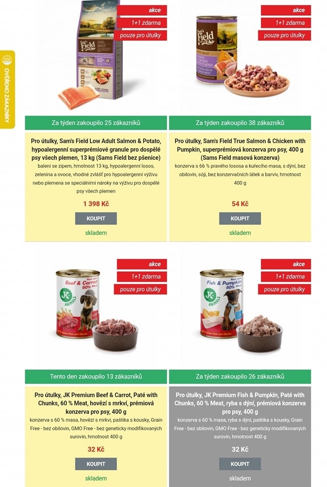 Viz foto. Vy koupíte jednu za 32 a firma JK Animals dá tu samou zdarma. A to se fakt vyplatí. Zde odkaz: https://www.jkanimals.cz/cs/pro-psi-utulky-a-spolky-pomahame/nakupte-pro-utulky-1-plus-1/