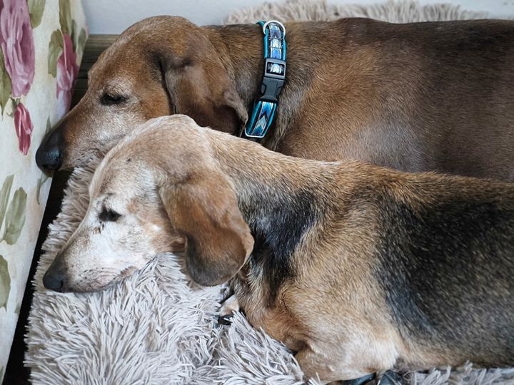 Emilka a Kamilek jsou po snídani. Tak se venku proběhli a zalezli do hajan.