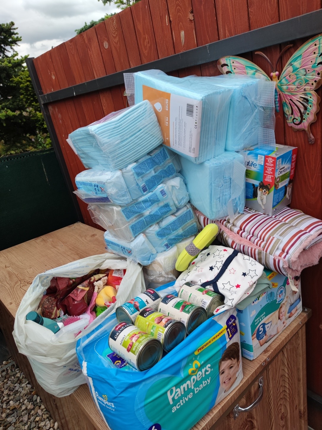 Pozn.pro některé se jeví pomoc nadmíru přehnaná, ale realita je taková, že např.u plen jsou denně 3 balení fuč, savé podložky balení, o vlhčených ubrouscích ani nepíšeme, ty letí závratnou rychlostí. V JVN nemáme téměř mladé a zdravé psy. Máme 18 hendikepovaných. 20 má pleny, musí se x krát denně přebalovat. Senioři mají hygienu moc špatnou, takže nonstop uklízení. Masovky – 3 balení po 6x800g denně. Granule urinary mají pytel na 5 dní. Takže ano, takto se jeví, že je hromada darů a my křečkujeme, ale opak je pravdou. Vše je spotřebováno a kolikrát dokupujeme. Máme v péči 50 pejsků. A tento počet držíme a když se uvolní místo, je doplněno pejskem, který čeká na umístění k nám. Všem děkujeme, jen díky vám JVN funguje a jede. Společně s vámi jsme JVN. ❤️
