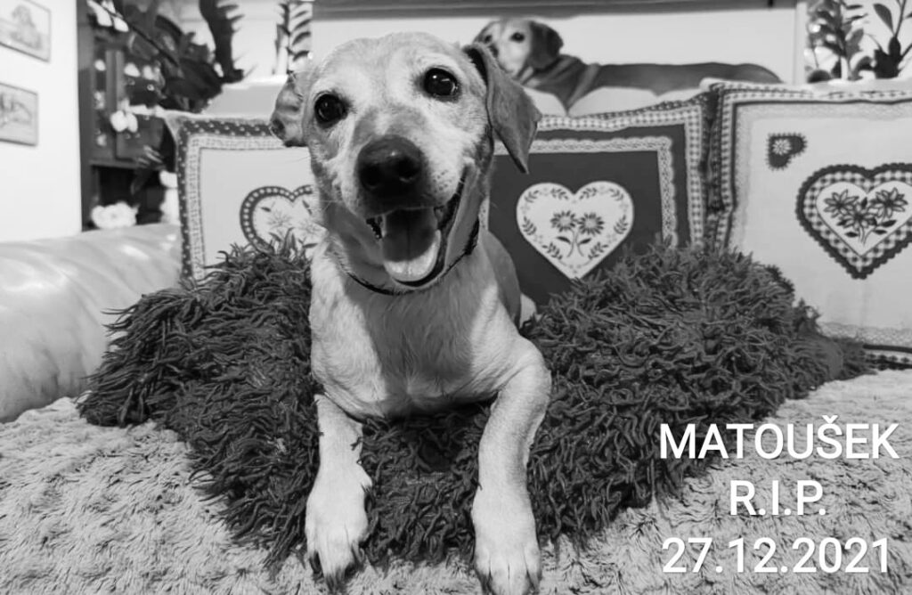 Když jsem včera psala rozloučení s Denouškem, prosila jsem, ať je konec té nesmírné bolesti. Ať už nikdo neodejde. Věděla jsem, že Matoušek týden bojuje o život, selhalo mu srdíčko, práva strana. Dostal novou léčbu, ale… Dostali jsme společný čas, čas na rozloučení, čas, kdy jsme oba věděli, já stále věřila, on mě konejšil a jeho pohled říkal, jednou se setkáme. Včera mi ležel v náručí a cítil bolest ze smrti Denouška, i přesto byl, tiše ležel, usmíval se, držel se. Každý se mě ptá, jak si vše můžete pamatovat, pro mě jsou to vše ty nejdůležitější momenty. Pamatuji si první den, 3.12.2020, kdy se svým bráchou Mikuláškem přijeli do JVN, dva raubíři, kteří nám první týdny velmi rozproudili život v JVN. Rváči, bojovníci, urputní lumpíci, jak nebylo po jejich, dostali jsme ťafku. Říkala jsem si, to jsem zase souhlasila s pomocí… ALE! Najednou zlom, změna tak velká, že nikdo nevěřil, že to jsou „ti dva“. Uvěřil nám, pochopil, že jsme tady pro něho, s ním a nikdy mu neublížíme. Jeho láska byla doslova neskutečná. Byl mým stínem. Jeden rok a necelý měsíc nám dělal každý den krásnějším, jeho úsměv byl tak nakažlivým, že stačil jeden jeho pohled a hned bylo po mráčku v náladě. Přes rok hledal domov, nikdo si však nevzal starého a nemocného pejska, u nás měl domov, milující. Je další jasnou hvězdou v souhvězdí JVN. Moje srdce je tisíc kousků. Jeho bráška Mikulášek s ním byl do téměř poslední chvíle. I on věděl. Hlídal ho. Doprovázel.