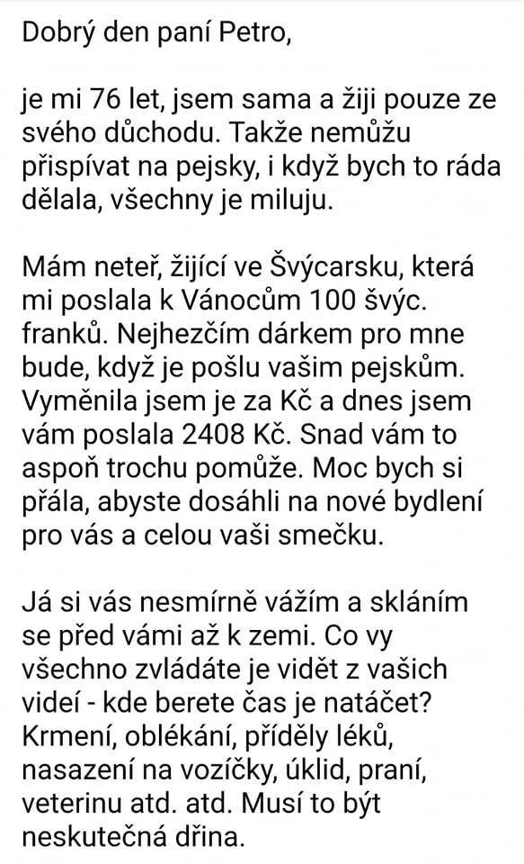 Nesmírně si vážím každé vaší pozitivní zprávy