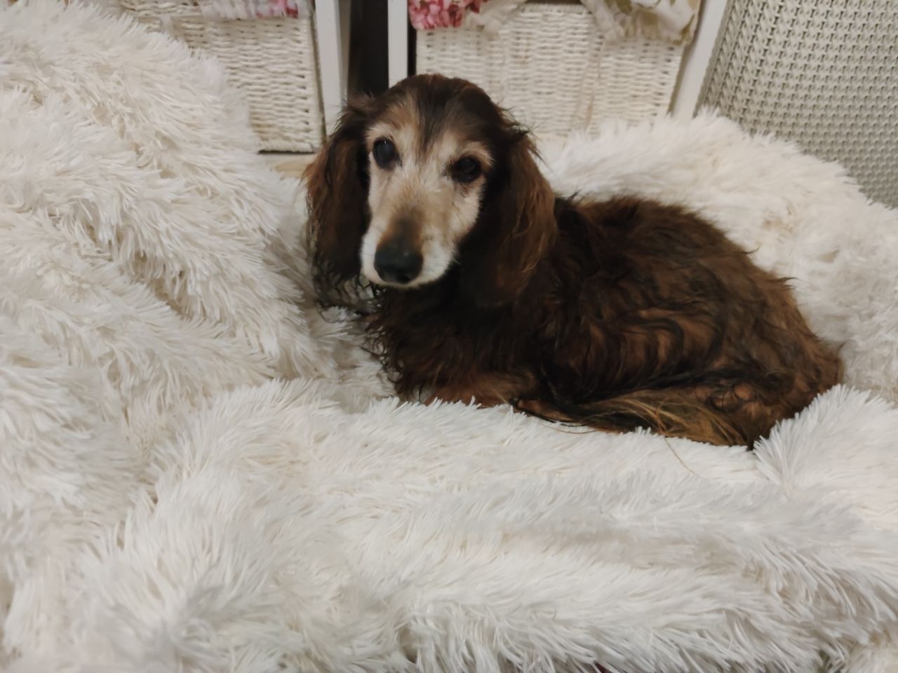 Téměř 15 letý dědeček, má po kompletním vstupním vyšetření u naší paní doktorky Zuzky. No …. Žádná sláva. Má šelest na srdci, dostal Piramil. Jaterní a ledvinové parametry špatné, dostal Sanicell a Pronefru. Má průjem, jde z něj písek, dostal gel na zklidnění. Zuby ve velmi zlém stavu, zánět.