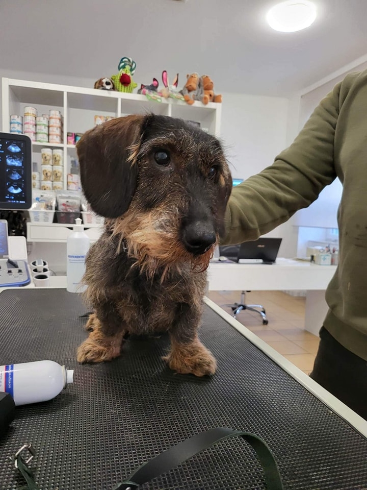 Již má za sebou kompletní vstupní vyšetření u naší paní doktorky Zuzky. Vše má ok. Slinivku posíláme. Má velkou tříselnou kýlu. Krev v moči, ale bez zánětu, budeme sledovat.