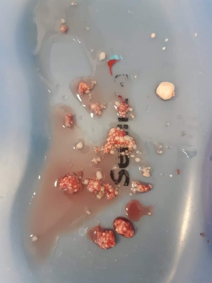Bibinka má po náročné operaci močáku. Vše je venku. Opět velké díky naší paní doktorce Zuzce, která operovala mimo operační plán.