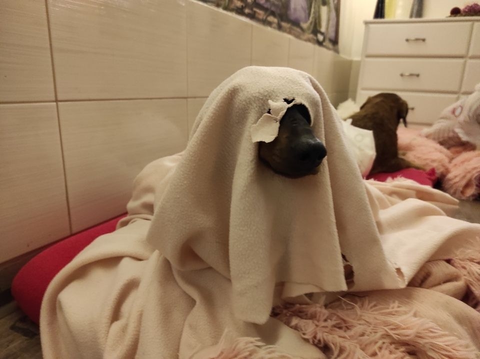 Si myslí, že když si dá kuklu, že ho nepoznám!