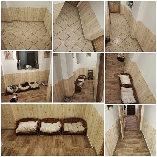 Ze studených kachliček na lino. Všude je teplo a rafánci si lehají různě.
