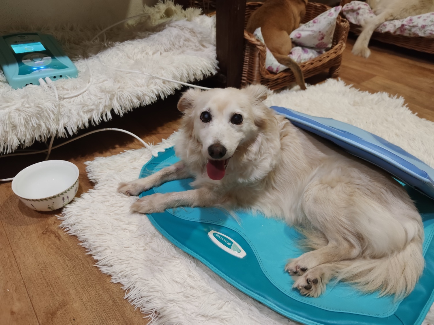 Noc zvládla Simonka dobře. V klidu spinkala, sama se pretočila. S hlavičkou dobře hýbe, točí. Sílu v přední části těla má. Na předních se při podpoře chvilinku udrží. Zadní vůbec, ale citlivost má. Byli jsme upozorněni, že i když ji cvičením postavíme, tak její koordinace předních a zadních bude hodně složitá. Uvidíme, jsme na začátku.