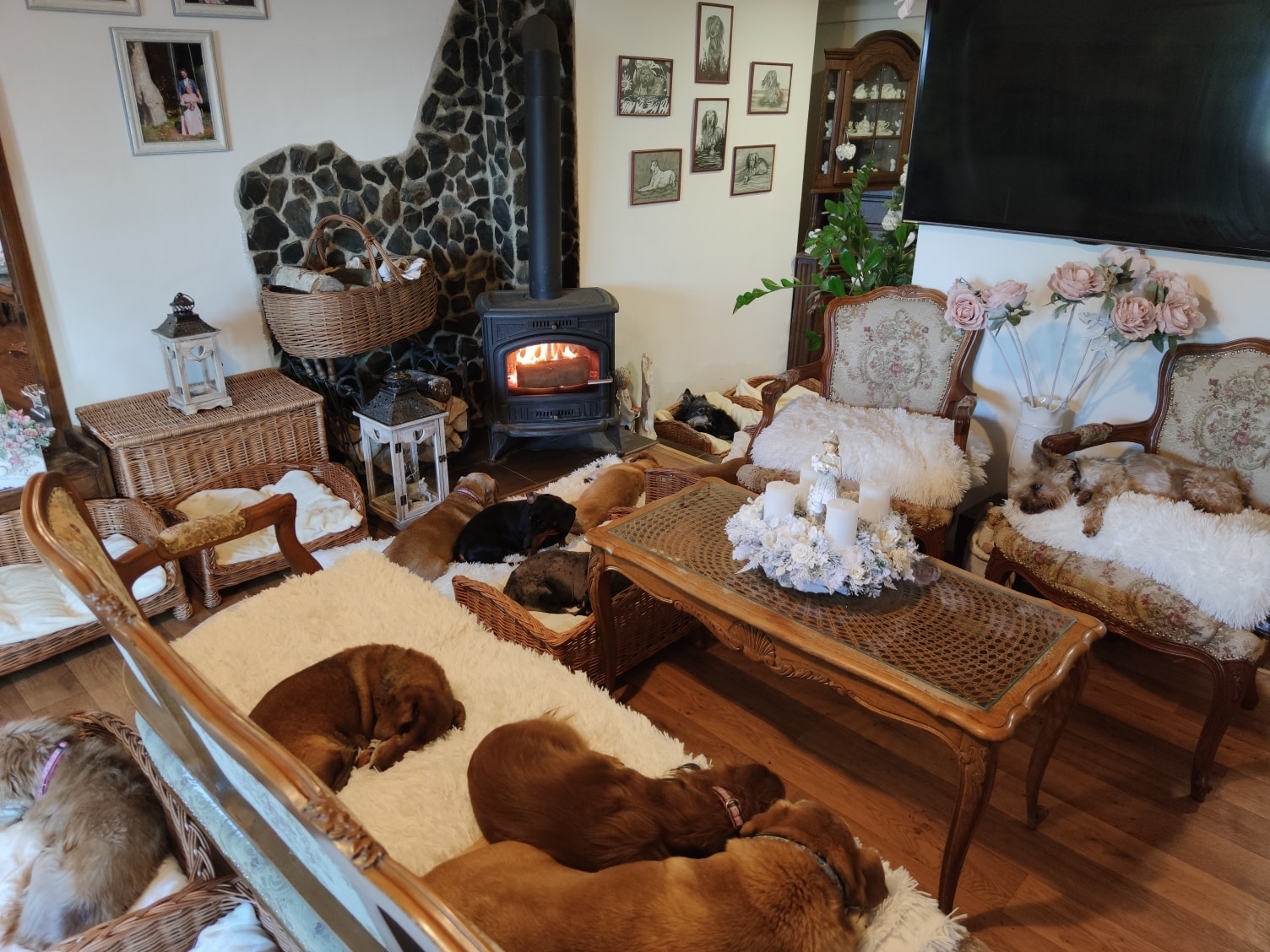 Teď jen rup šup vyvenčit. A ke krbu. Panička řadí u pyžama gangu, tak máme klídek na šlofíka.