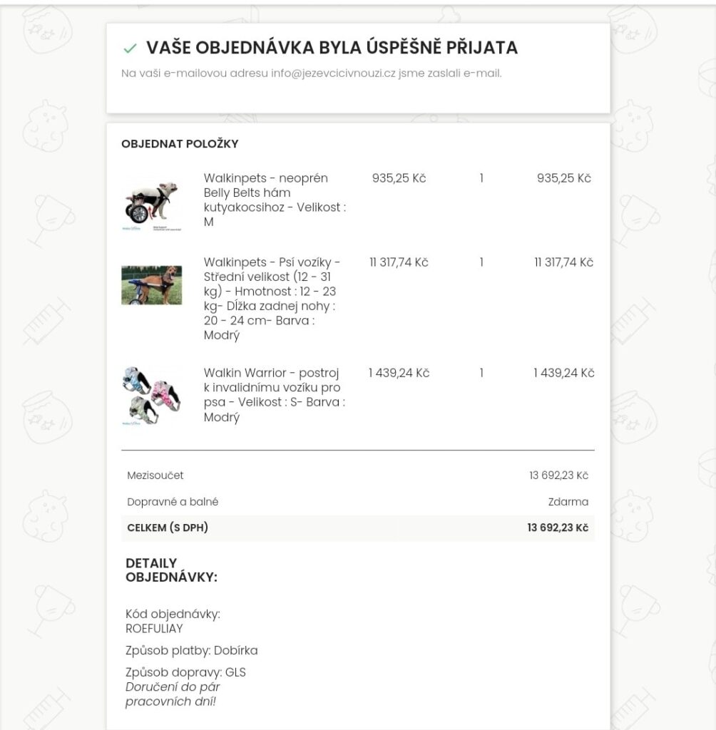 Takže jsme neskutečně vděční, že Dana s Pepou vozík koupili a prostě zkusíme tohoto výrobce. Nemáme finance na obnovu vozového parku pro všech našich trvale hendikepovaných 21 pejsků, ale teď zkusíme a uvidíme. A pokud se najde nadšenec, který skutečně vytvoří funkční vozík, který se nebude furt lámat, budeme se k němu klanět. Doslova.