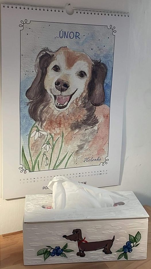 Naše Helenka zdobí měsíc únor v JVN kalendáři. Krabičku na kapesníčky Martinka vydražila v aukci.