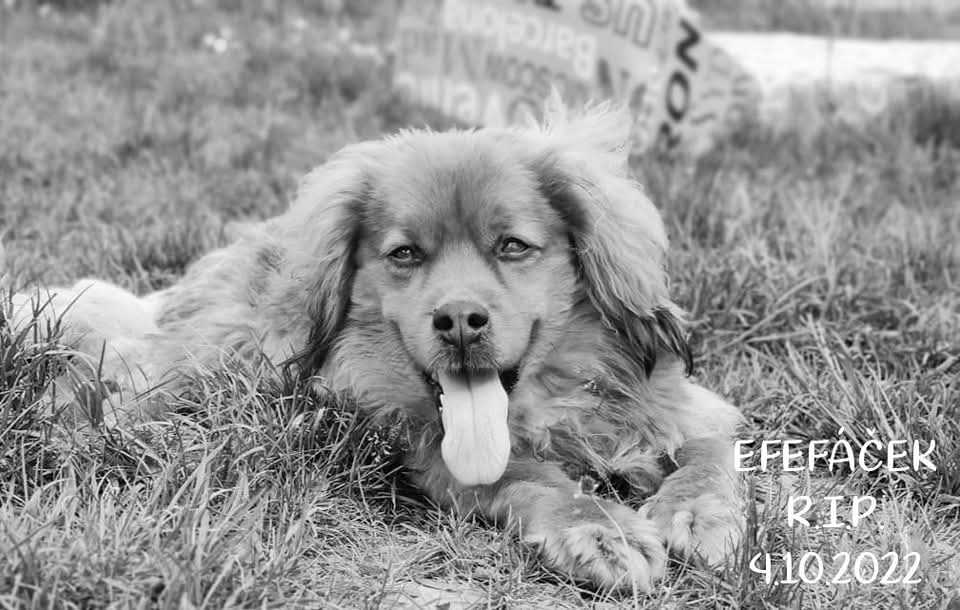 konci zahrady, jeho krásné "efef". Byl nesmírně křehoučký, žádné pevné kosti. I přesto se postavil a šel. Měl vlastní způsob, ale našel ho. Vždy s úsměvem a ty jeho oči! Oči plné lásky, vděku, energie života. Bože, ty jeho velké krásné oči, které mi každičký den říkaly, jsem tady. Nebyl to plyšák, ač vypadal, byl to pan pes s velkým názorem. Mnohé psy doslova nesnášel a zakousl by je. I lidi. Nejednoho člověka prohnal. Věděli jsem,že je nesmírně nemocný a každý den je pro nás dar. Věděli. Ale znáte to, naděje, víra. To, že si říkáte, ne, neumře. Ne, nenechá mě tady. Nechal. Jeho úloha na tomto světě skončila a určitě dělá v souhvězdí JVN velké pořádky. On je král! On je lev! On nyní vévodí souhvězdí. Podívejte se na oblohu a najdete tu největší hvězdu. To bude on. Efef! Pochovala jsem za posledních 8 roků stovku pejsků. Ano, stovku. Číslo neskutečné. Bolest nesmírná a nepopsatelná. A tato ztráta je pro mě tou největší. JVN není útulek, resp. jen nějaký spolek na záchranu pejsků, jsme domov. Kéž pan Efef byl šťastný. Kéž poznal i lásku a dobro v nás lidech. A co mě měl naučit. Všichni to víme, psát to asi ani nemusím, napíši - i z největších sraček se dá vstát, jít se vztyčenou hlavou a být lvem. Být statečný bojovník. Žít naplno. Efef