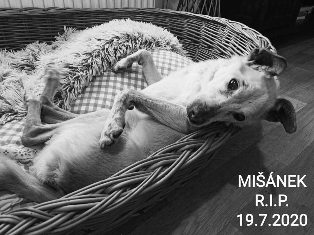 Dnes se rozzáří další hvězda v souhvězdí JVN. Míša, staroušek bojovníček, žil s úsměvem ve vlastním světě, kde mu ke štěstí stačila plná miska masenka, chlupatý pelíšek a pomazleníčko. Každý pejsek, který je u mě na dožití mě něco naučí. U Míši to byla svatá trpělivost. Vážně...dokázal se během dne x krát počůrat, pokakat, nejlépe do čistého pelíšku. Miloval hru na schovku, takže jsem často vyhlásila JVN pátračku a Míša si vždy našel nový úkryt. A když už jsem myslela, že jsem vše doladila a nemá kam zalézt, překvapil, naposledy předevčírem, kdy vlezl za novou boudu, kde je škvíra sotva číst více
