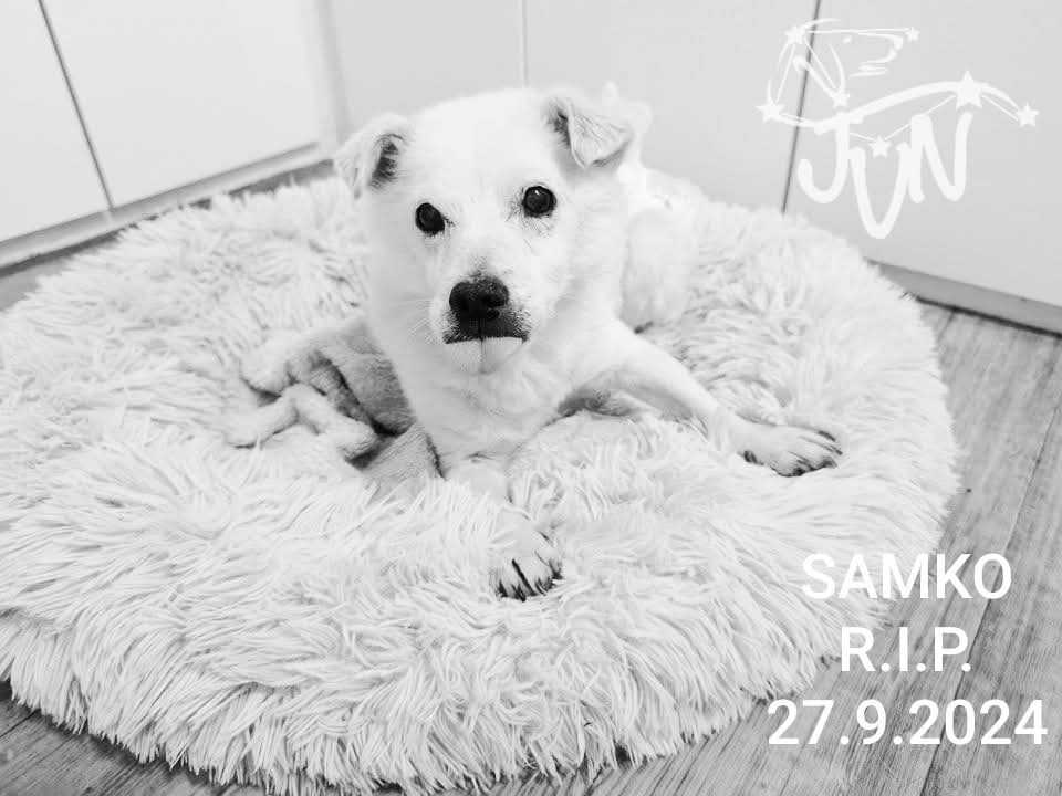 rozmazlený. Papání. Jinou deku, málo vody, jinak otočit. Venku nee, doma nee, mazlendo grando jooo, pojď sem, haf haf, kde siiii. Každé tvoje štěkání bylo jiné a úplně jsi mluvil. Tvoje černé perličky. Hedvábné bílé chloupky. Jak mládě tuleně. I ses tak válel. Ach. Jak je ten život kolikrát nespravedlivý. Mohu si stonkrat, tisíckrát říkat, je to, co má být. Ale v tyto okamžiky to nejde. Tolik jsem věřila. Tak moc jsem si přála, ať se nám vrátíš. Teď je u staroušků ticho. Nikdo neštěká. Nikdo. A pro ty, kteří nevíte, Samko byl zcela zdravý, s ničím se neléčil, večer v pondělí trošku kuckal, mysleli jsme,že po večeři, vždy hltal, ale ráno více a začal sípat. Jel ihned na veterinu. Vyšetření komplet. Zápal plic. Dostal léky. Hospitalizace nebyla nutná. Bohužel se jeho stav s léky nelepšil a musel jet opět na hospitalizaci. Potřeboval kyslík. Samko odešel včera o půl deváté večer, kdy mi psala paní doktorka. Stal se jasnou hvězdičkou v Souhvězdí JVN. Vždy vám říkám, že odchody "zvládám", protože vím, jakou cestou JVN jdu. Když je pejsek dlouhodobě nemocný, má kolapsy, tunu léků, tak nějak racionálně smrt pak již očekáváte, je to zásah, velký, ale jste tak nějak postupně připraveni na tu ránu. Ale odchod Samka je pro mě osobně jak atomovka hozená do mého srdce. Naprosto nečekané. A mé pocity vám popisovat nemusím. Samko, děkujeme za těch 10 měsíců s námi. Děkujeme vám všem, že jste s námi a my tak můžeme dávat naději.